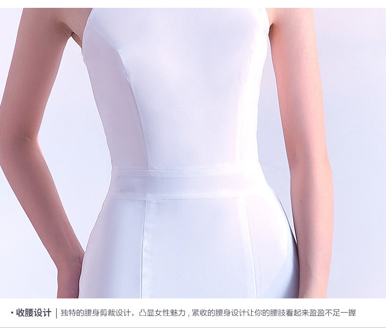 Bride toast clothing new fashion long red fishtail hanging neck wedding banquet evening dress