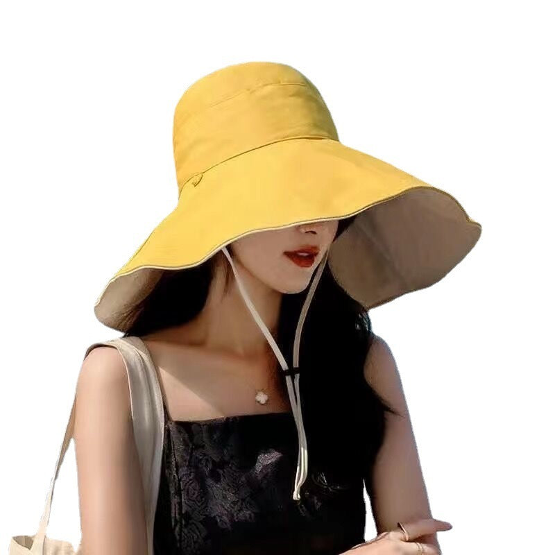 Double-Sided Oversized Brim Sunscreen Fisherman Hat Female