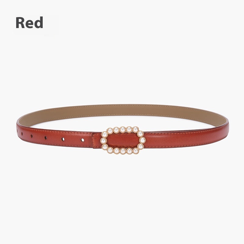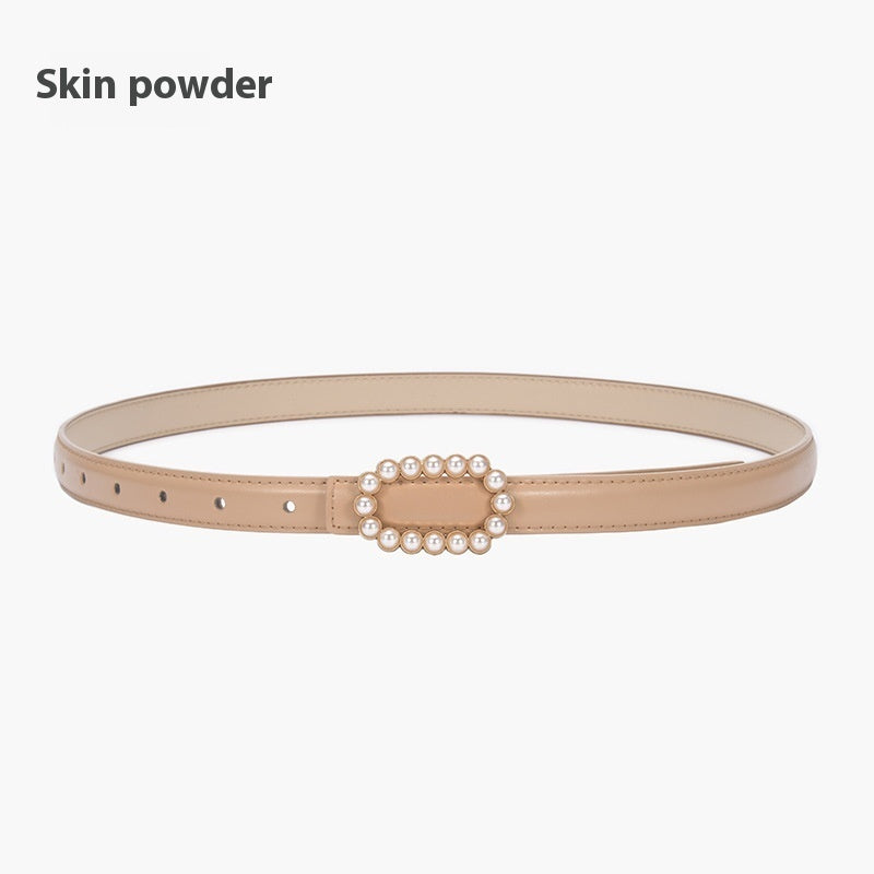 Genuine Leather Black Fashion Belt Fine Decorative One-suit Skirt Suit Jeans