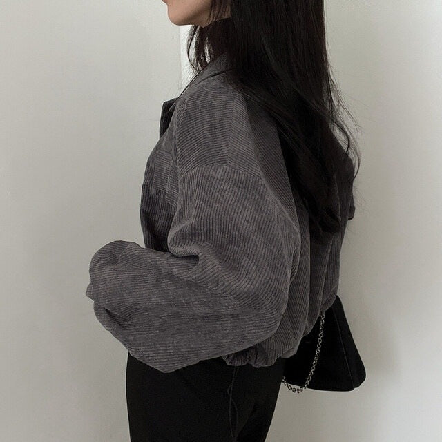 New Retro Simple Lapel Short Drawstring Top Coat For Women